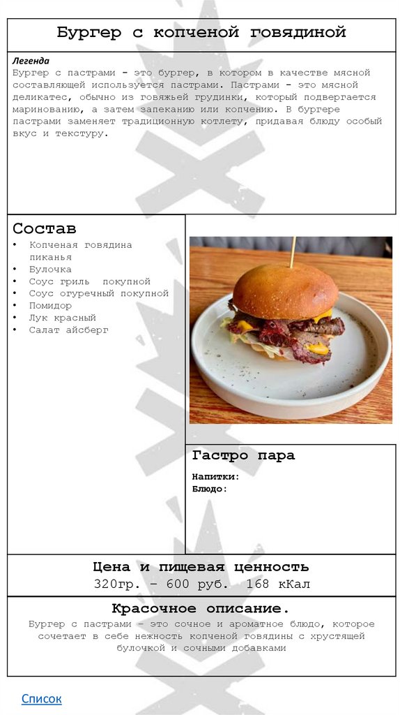 • Бургер с копченой говядиной