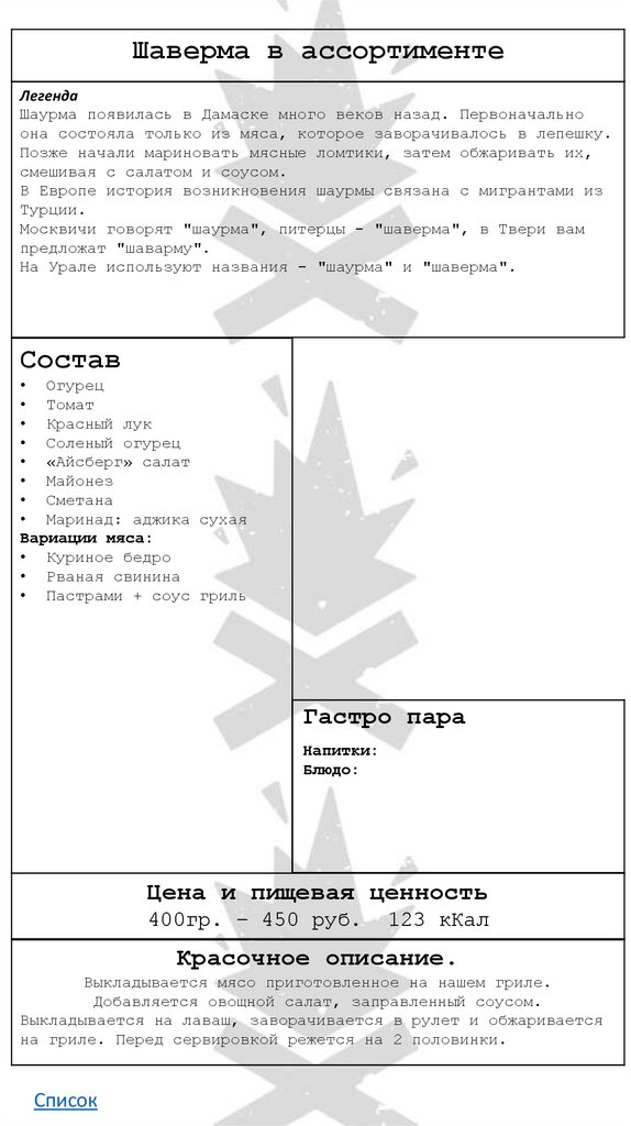 • Шаверма в ассортименте