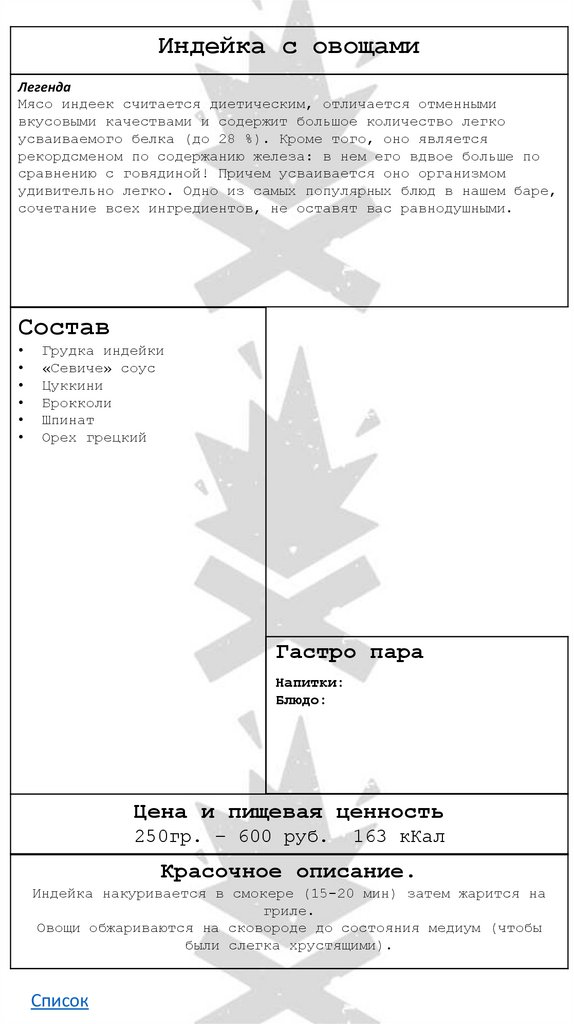• Индейка с овощами