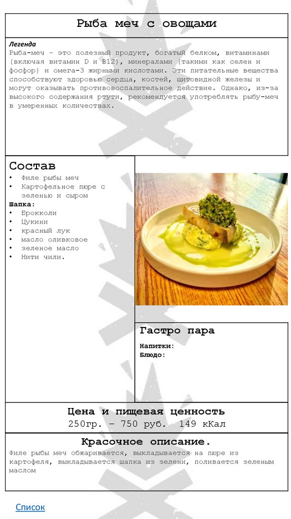 • Рыба меч с овощами