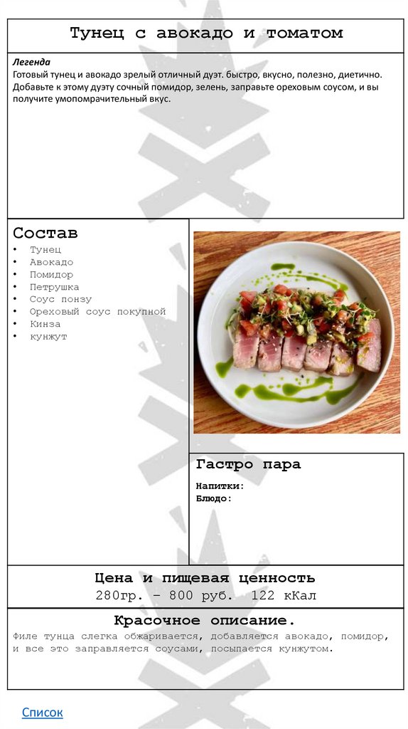 • Тунец с авокадо и томатом