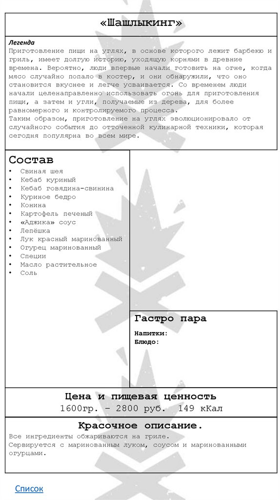 «Шашлыкинг»Легенда