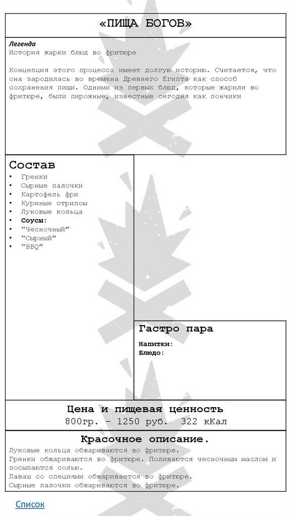 «ПИЩА БОГОВ»Легенда