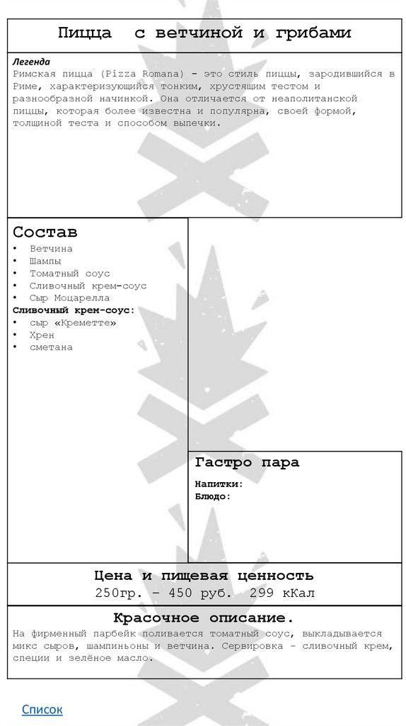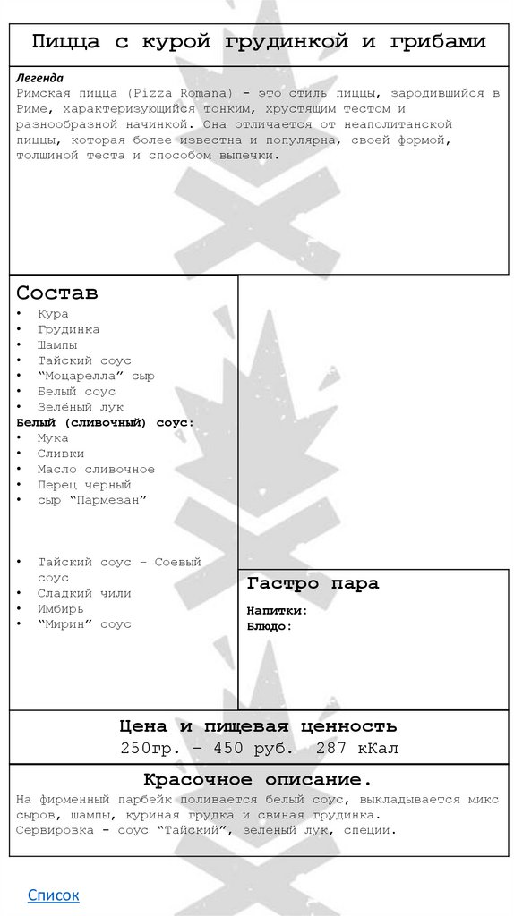 Пицца с курой грудинкой и грибамиЛегенда