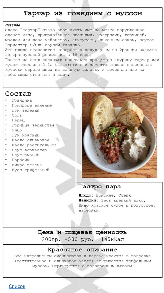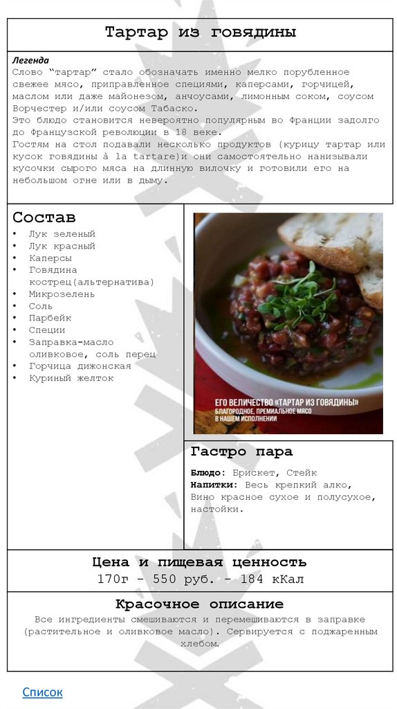Холодный старт• Тартар из говядины