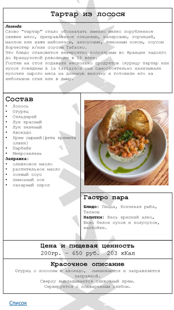 • Тартар из лосося