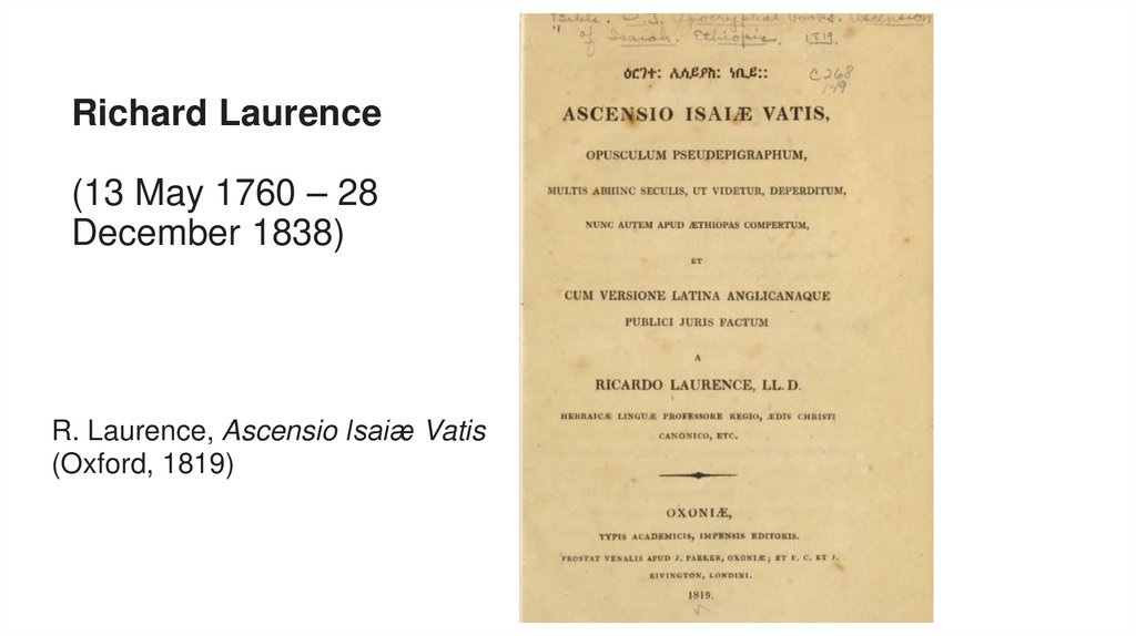 R. Laurence, Ascensio Isaiæ Vatis