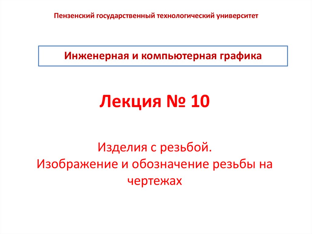 Лекция № 10. Изделия с резьбой. Изображение и обозначение резьбы на чертежах