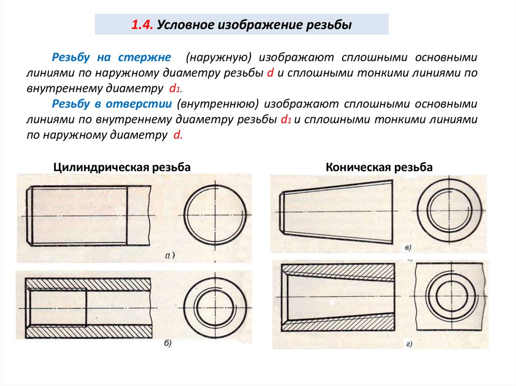 11. 1.4. Условное изображение резьбы