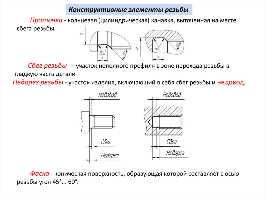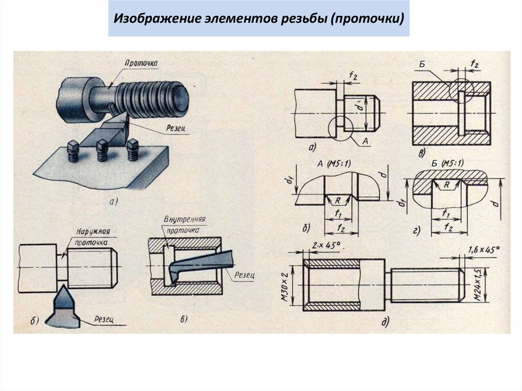 Конструктивные элементы резьбыПроточка - кольцевая (цилиндрическая) канавка, выточенная на месте
