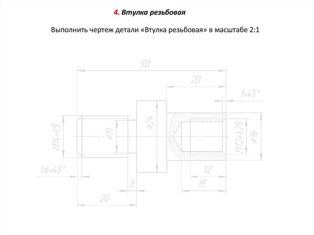 4. Втулка резьбоваяВыполнить чертеж детали «Втулка резьбовая» в масштабе 2:1