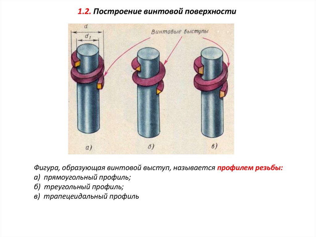 Фигура, образующая винтовой выступ, называется профилем резьбы:а) прямоугольный профиль;