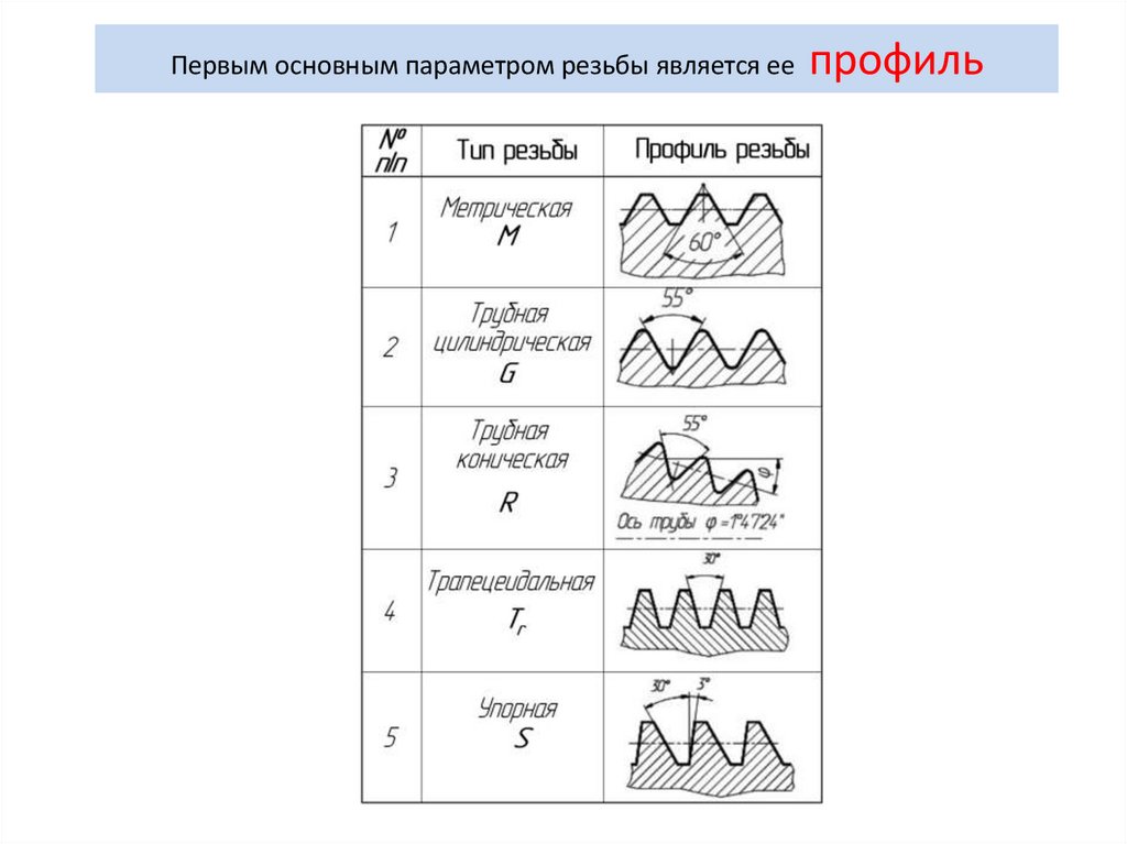 Первым основным параметром резьбы является еепрофиль