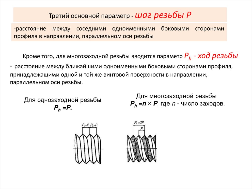 Кроме того, для многозаходной резьбы вводится параметр Ph - ход резьбы