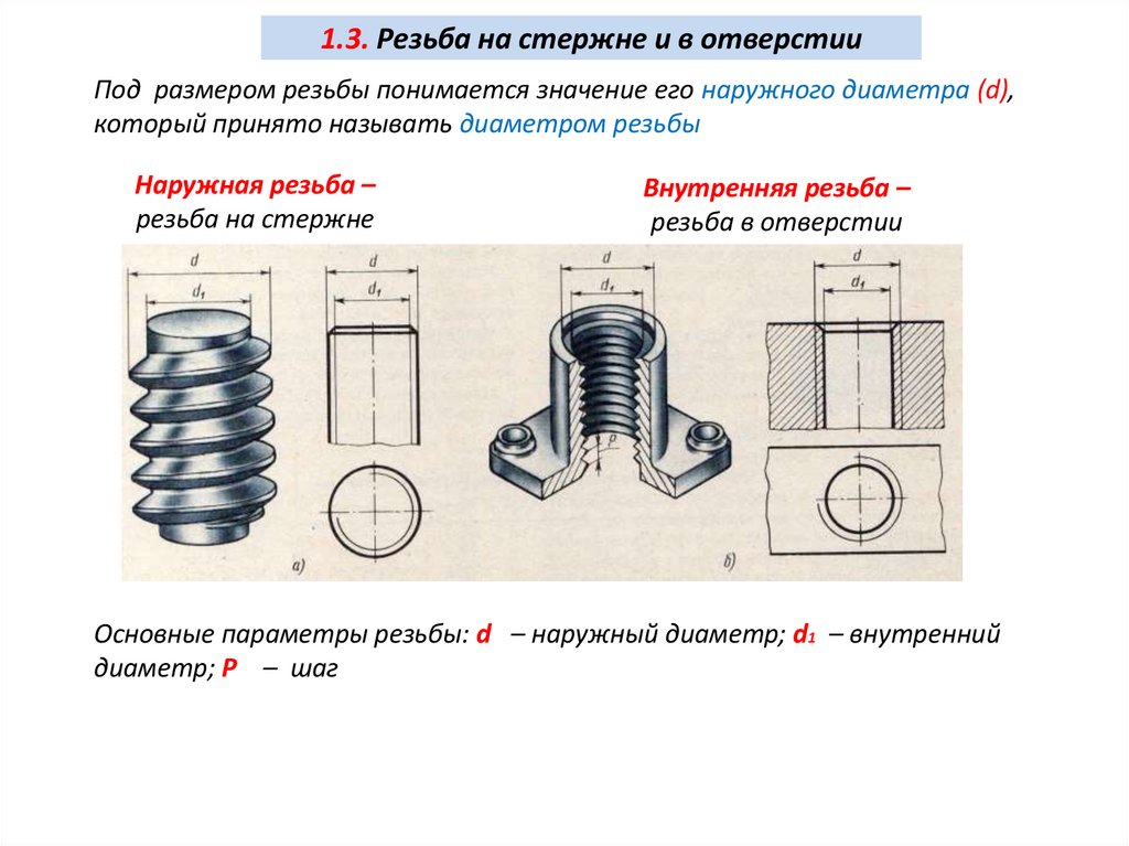 10. 1.3. Резьба на стержне и в отверстии