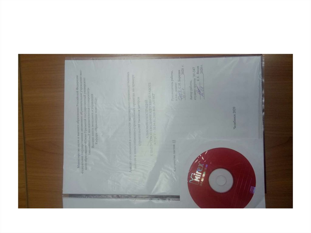 печатью, письма с предприятия о закреплении темы и практическойзначимости (по возможности),отчет по антиплагиату с вашей подписью, диск с ВКР,