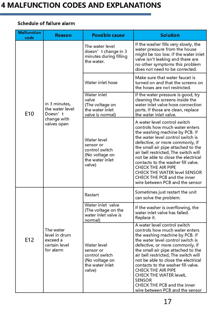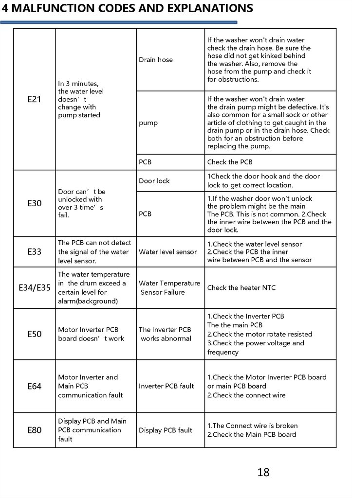 4 MALFUNCTIONS CODES AND EXPLANATIONS ……………………………………… 18