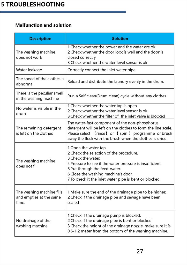 5 TROUBLESHOOTINGVibration of the washing