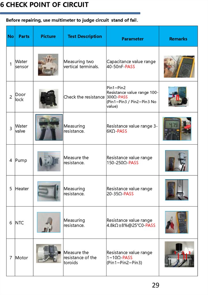 6 CHECK POINT OF CIRCUITBefore repairing, use multimeter to judge circuit stand of fail.