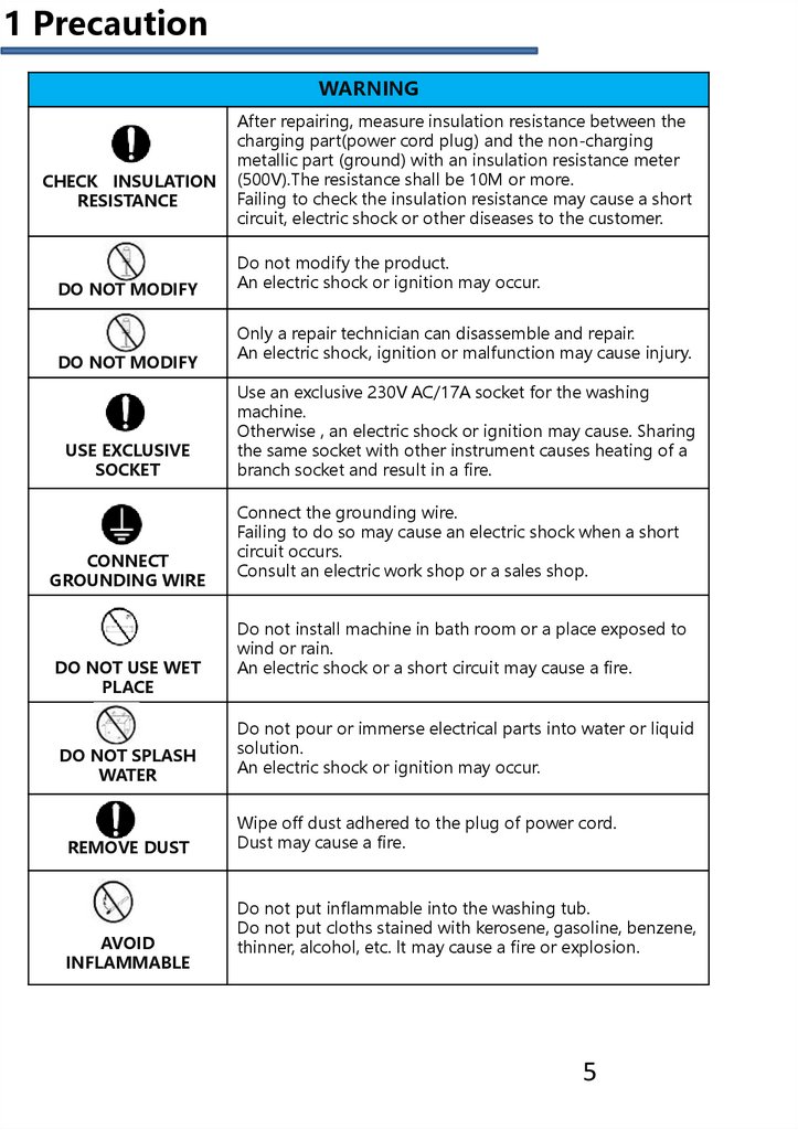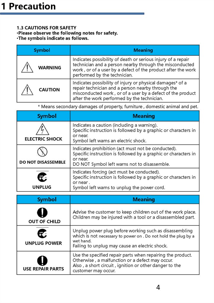 1 Precaution1.3 CAUTIONS FOR SAFETY