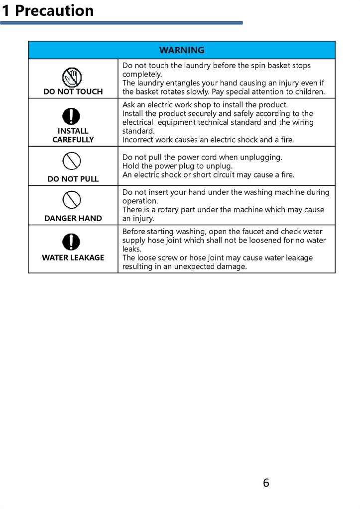 1 PrecautionWARNING