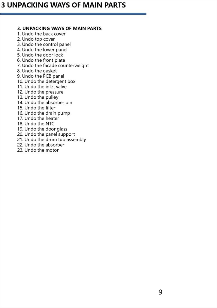 3 UNPACKING WAYS OF MAIN PARTS……………………………………………………… 10