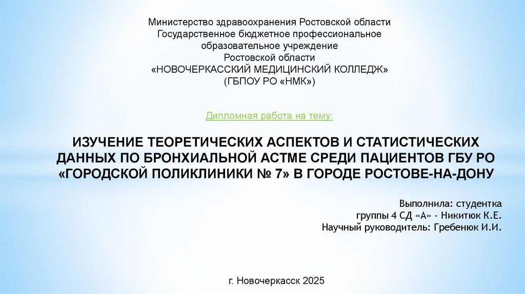 Изучение теории и статистики бронхиальной астмы у пациентов поликлиники №7 Ростова-на-Дону