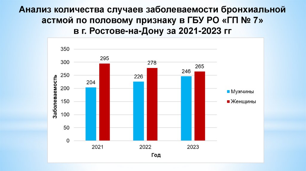 Анализ количества случаев заболеваемости бронхиальнойастмой по половому признаку в ГБУ РО «ГП № 7»