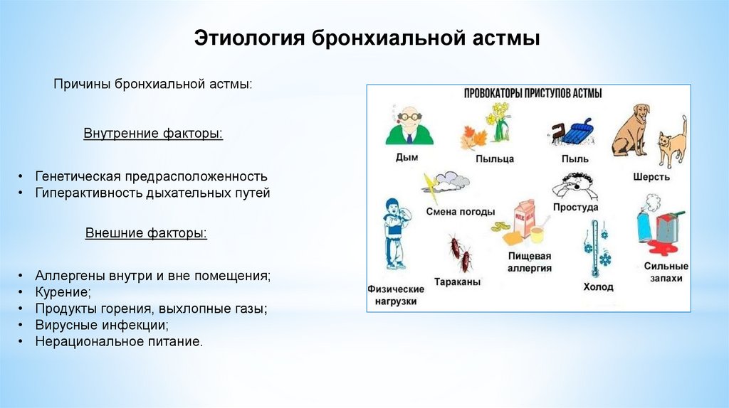 Этиология бронхиальной астмыПричины бронхиальной астмы: