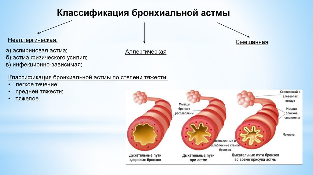 клинику заболевания бронхиальной астмой, диагностику, лечение;