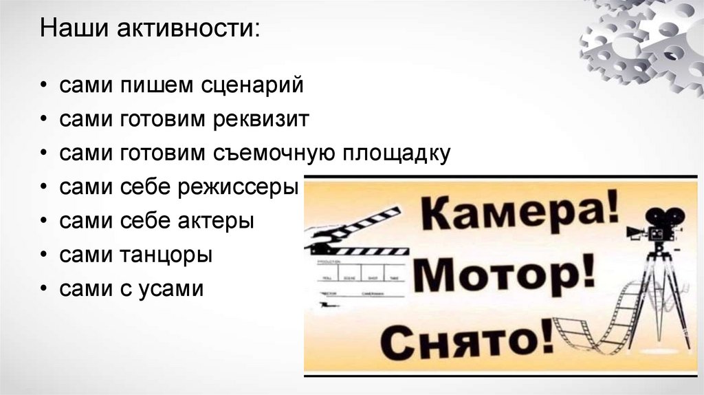 Наши активности:• сами пишем сценарий
