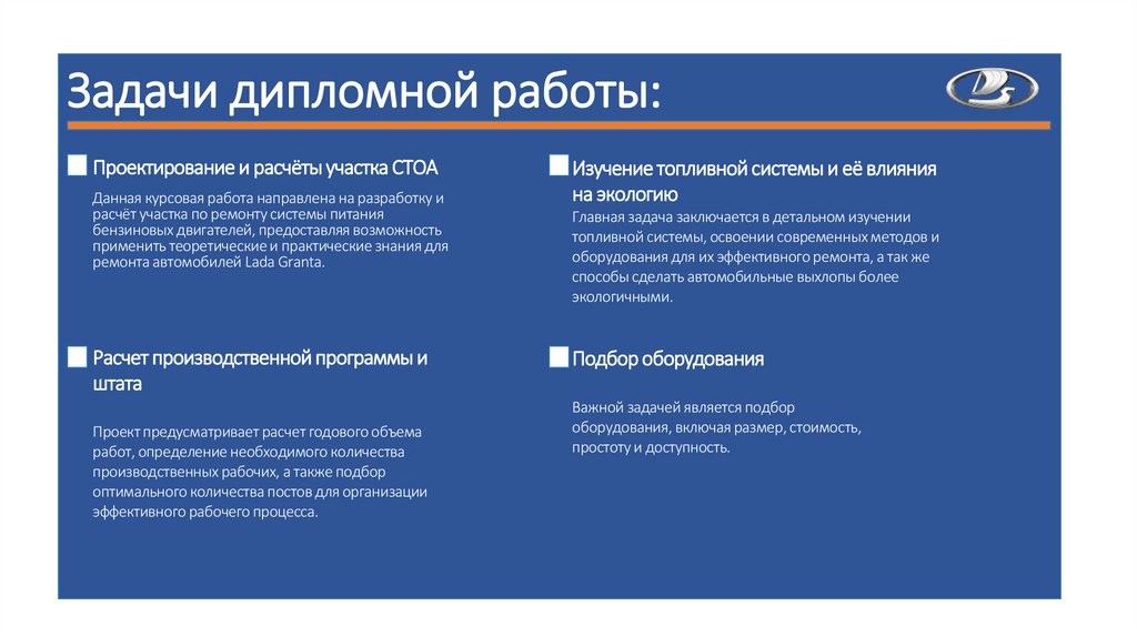 Задачи дипломной работы:Проектирование и расчёты участка СТОА