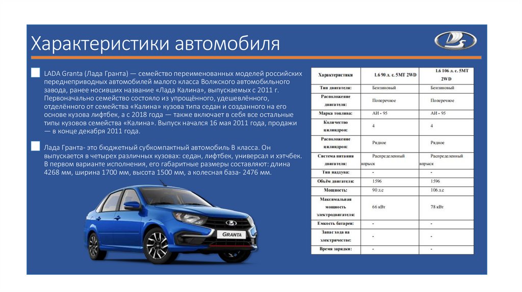 Характеристики автомобиляLADA Granta (Лада Гранта) — семейство переименованных моделей российских