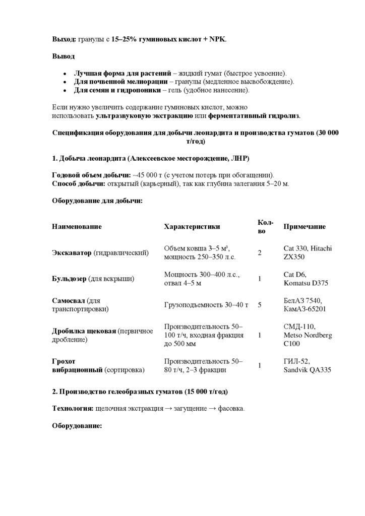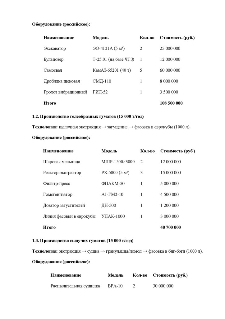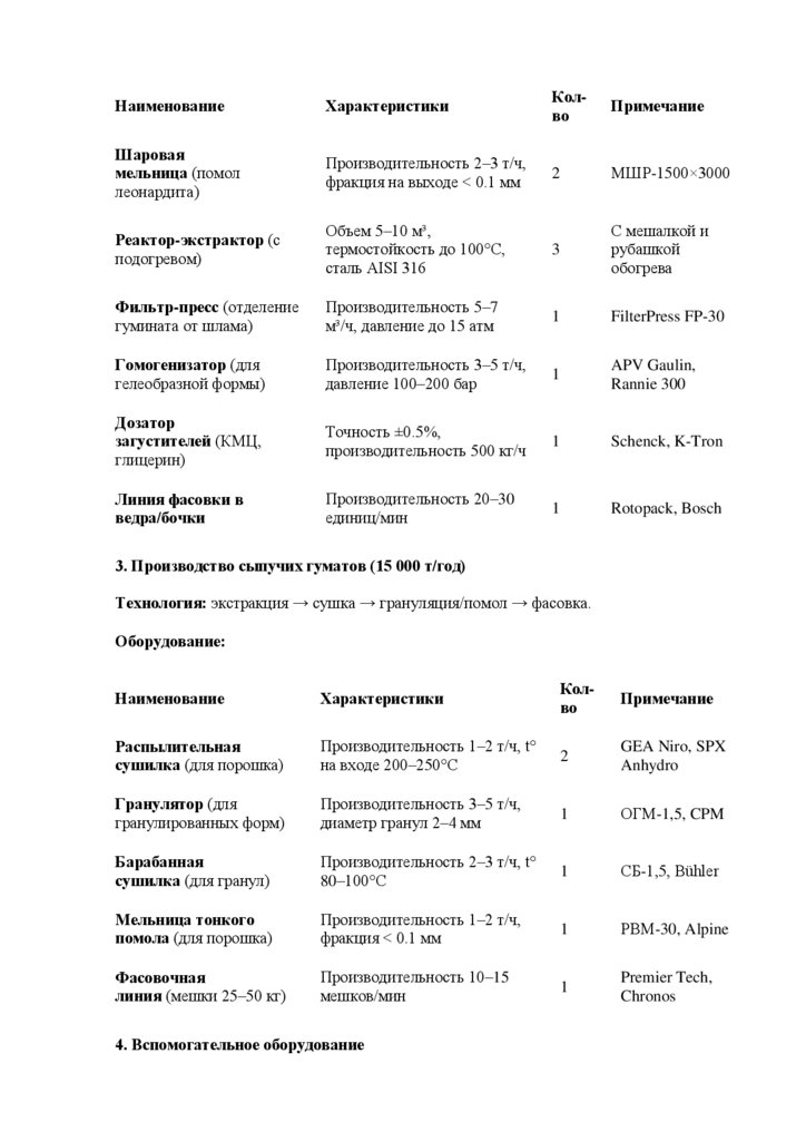 1.2. Производство гелеобразных гуматов (15 000 т/год)