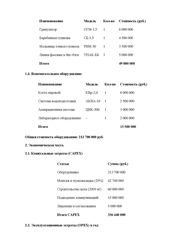 Сыпучие гуматы: 15 000 т × 50 000 руб./т = 750 000 000 руб./год.