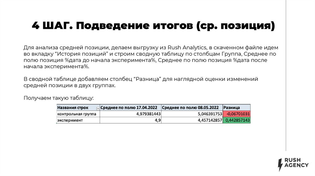 11. 4 ШАГ. Подведение итогов (ср. позиция)