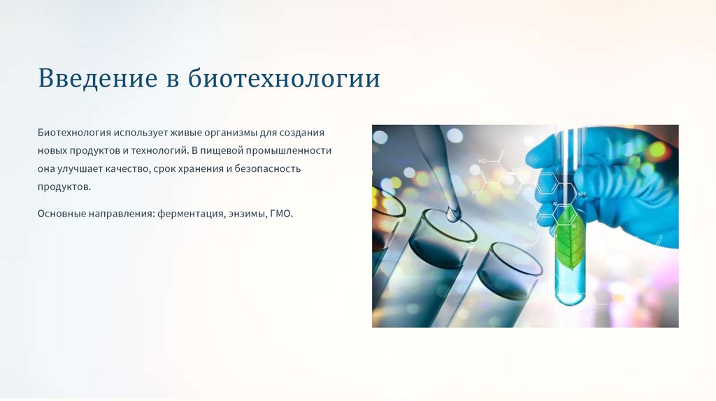 Введение в биотехнологииБиотехнология использует живые организмы для создания