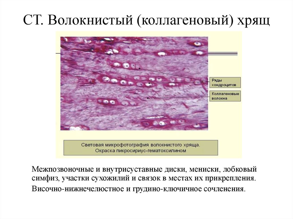 СТ. Волокнистый (коллагеновый) хрящМежпозвоночные и внутрисуставные диски, мениски, лобковый