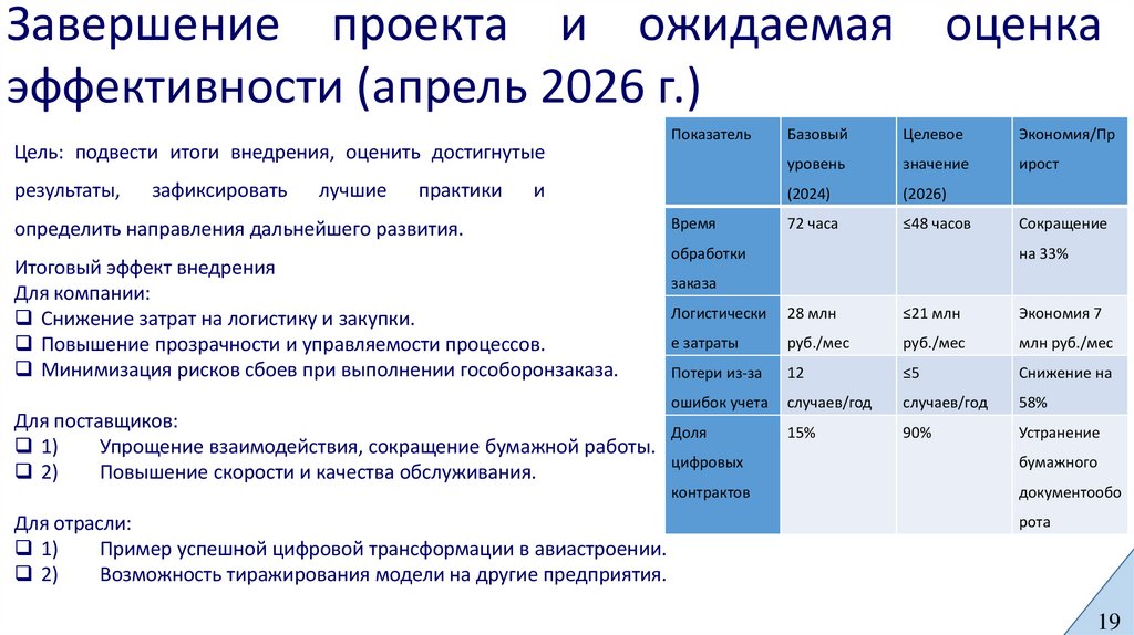 Завершение проекта и ожидаемая оценкаэффективности (апрель 2026 г.)