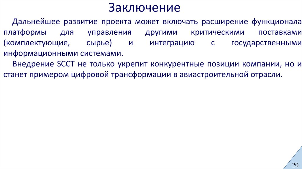 Внедрение SCCT не только укрепит конкурентные позиции компании, но и