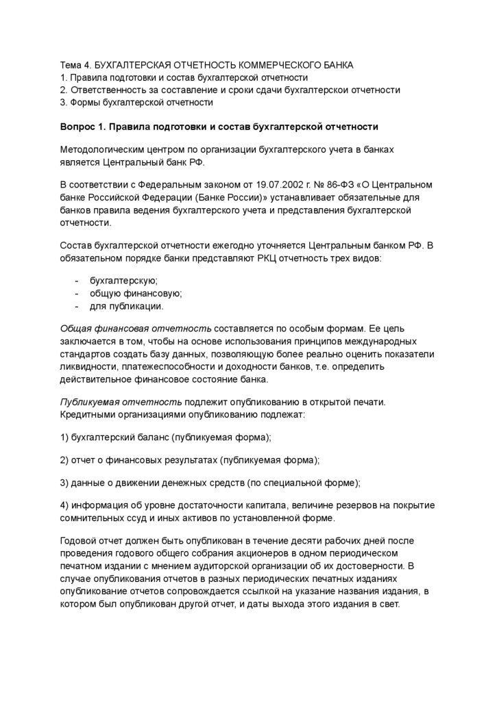 Тема 4. БУХГАЛТЕРСКАЯ ОТЧЕТНОСТЬ КОММЕРЧЕСКОГО БАНКА1. Правила подготовки и состав бухгалтерской отчетности