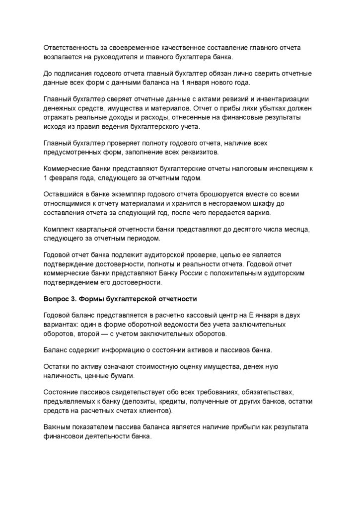 Ответственность за своевременное качественное составление главного отчетавозлагается на руководителя и главного бухгалтера банка.