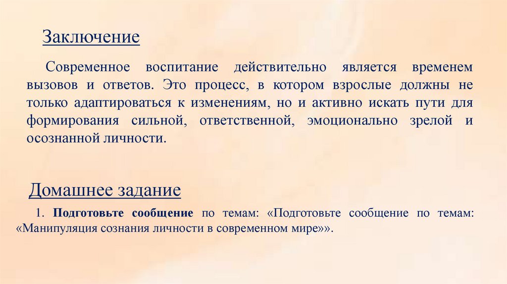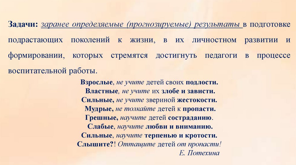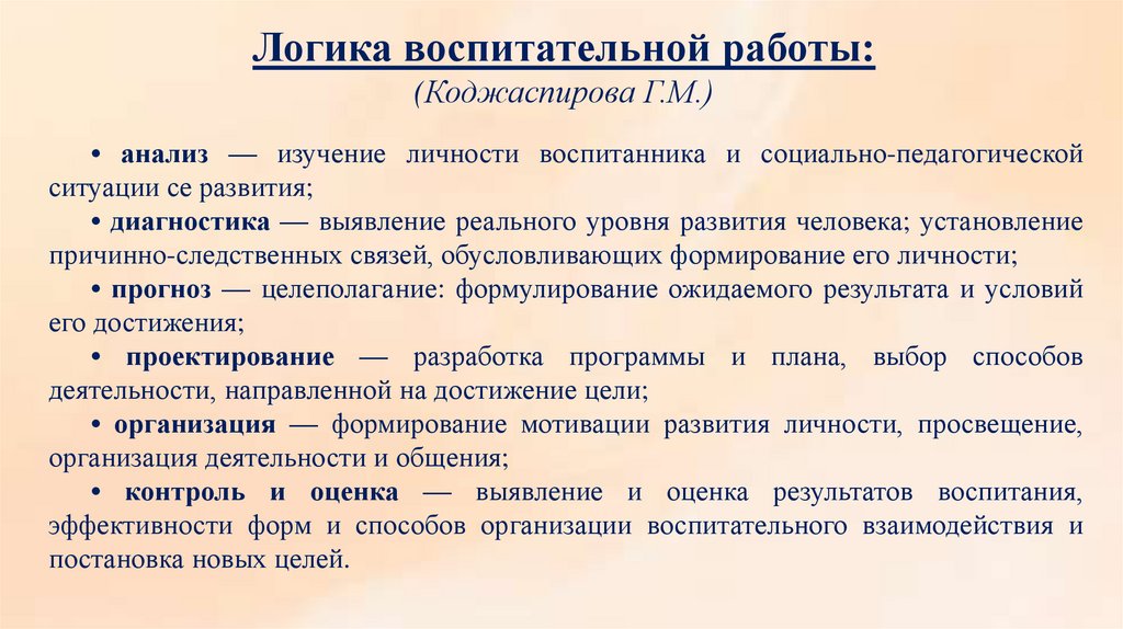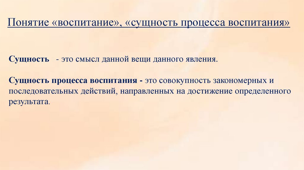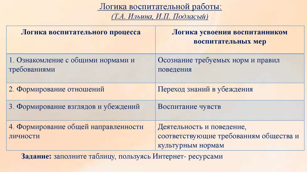 Цель: знать в чем сущность процесса воспитания и ее структура; уметь находить и