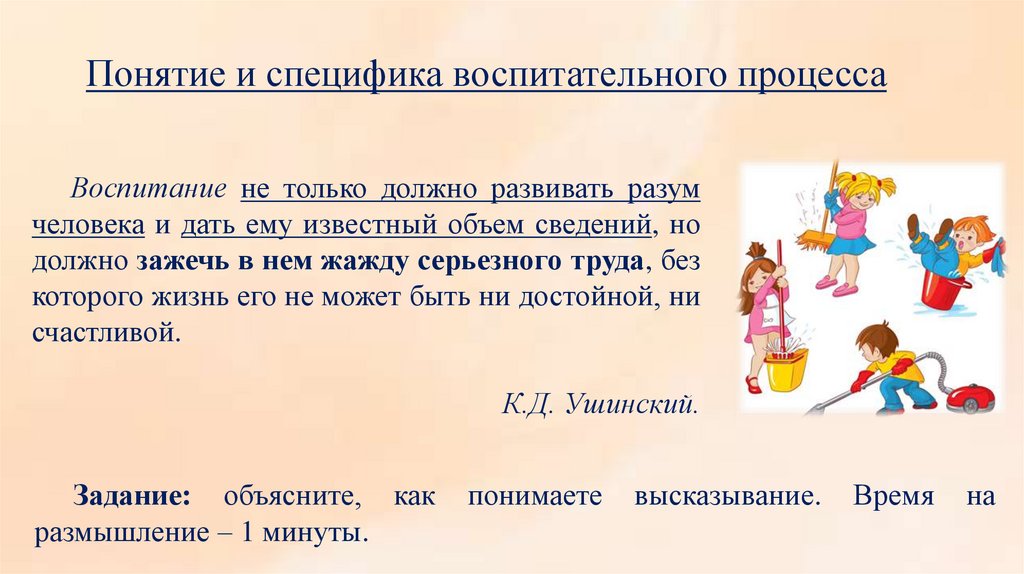 Понятие и специфика воспитательного процессаВоспитание не только должно развивать разум