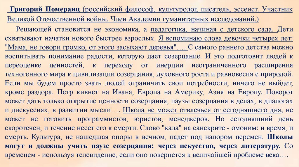 Григорий Померанц (российский философ, культуролог, писатель, эссеист. УчастникВеликой Отечественной войны. Член Академии гуманитарных исследований.)