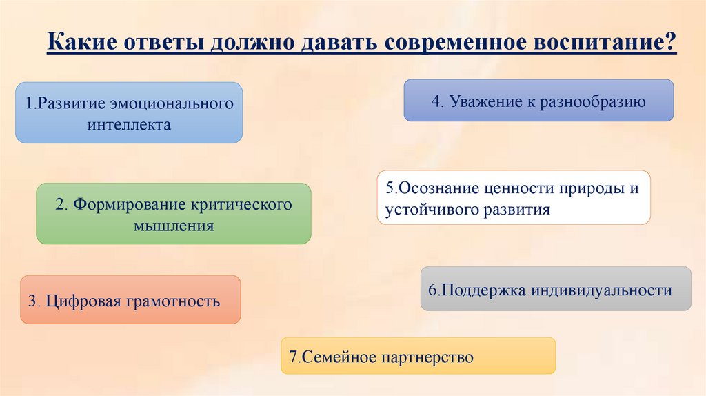 Какие ответы должно давать современное воспитание?4. Уважение к разнообразию