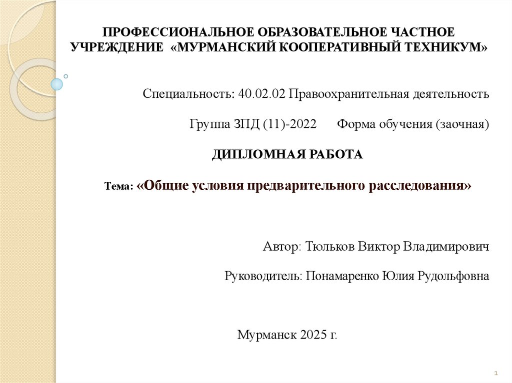 1. ПРОФЕССИОНАЛЬНОЕ ОБРАЗОВАТЕЛЬНОЕ ЧАСТНОЕ УЧРЕЖДЕНИЕ «МУРМАНСКИЙ КООПЕРАТИВНЫЙ ТЕХНИКУМ»