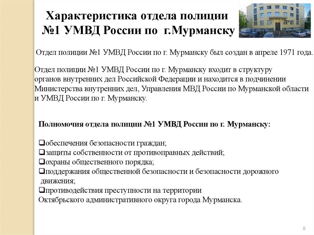 Характеристика отдела полиции№1 УМВД России по г.Мурманску