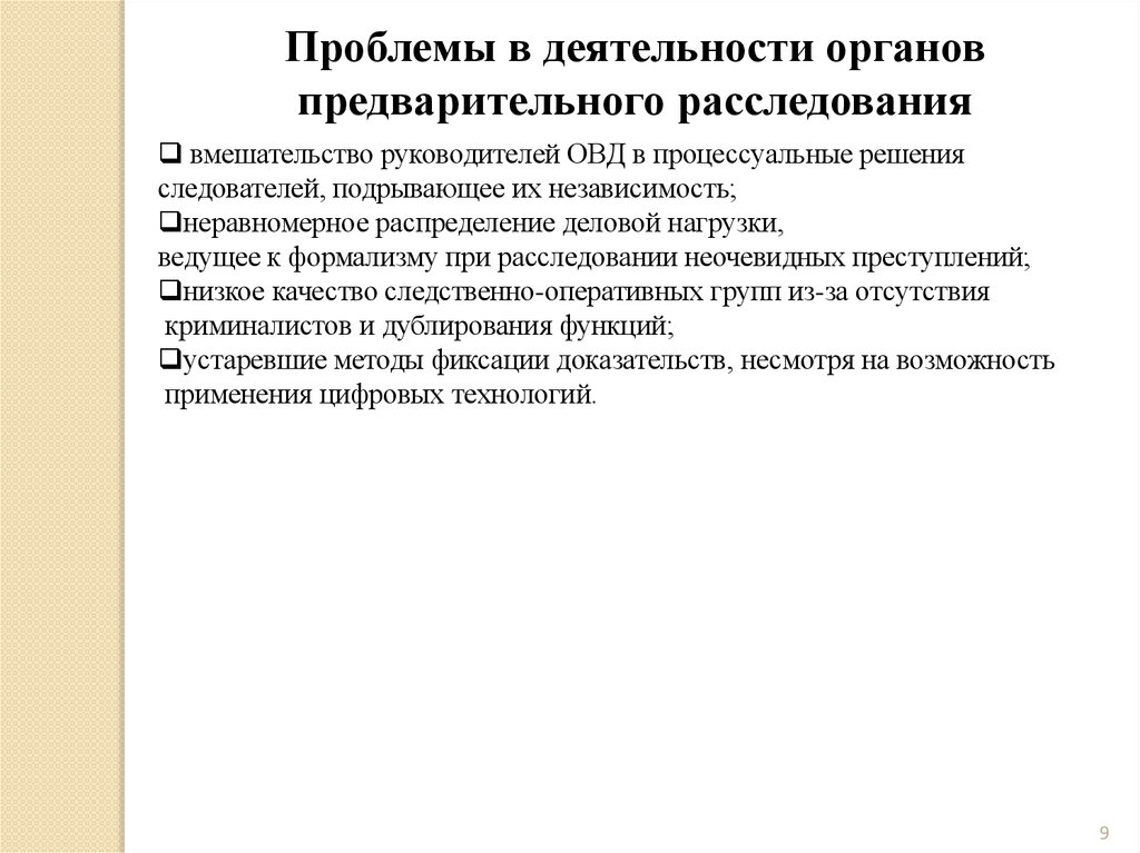 Проблемы в деятельности органовпредварительного расследования