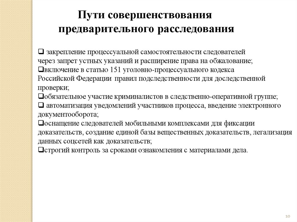 Пути совершенствованияпредварительного расследования